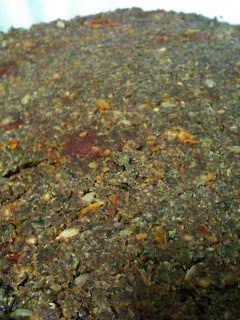Bati o trigo até triturar tudo e misturei com o resto dos ingredientes, depois deixei secando ao sol, mas dai o sol foi embora e não estava totalmente desidratado e por isso, levei ao forno com fogo baixo e forno aberto por mais 1 hora...